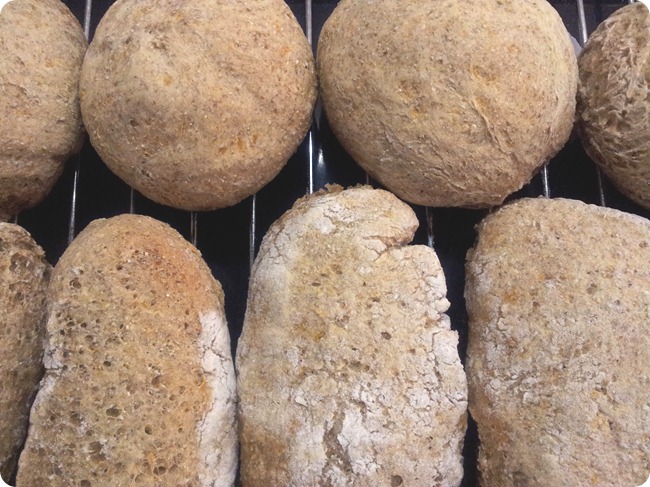 Bollerne formes, det er en våd dej, så ha' lidt mel på hænderne når de formes.